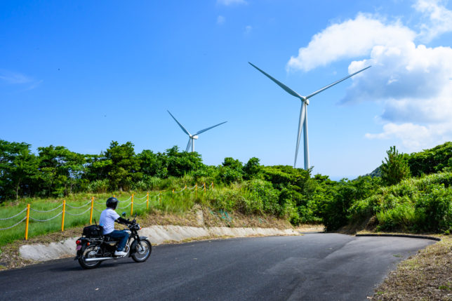 日御碕を後にすると、巨大な風車が立ち並ぶ道に差し掛かります。