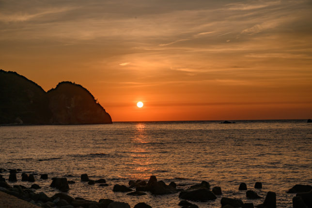 赤く染まる空と海を眺めながら、走り続けた一日の疲れを癒しました。ツーリングの締めくくりにふさわしい絶景でした。